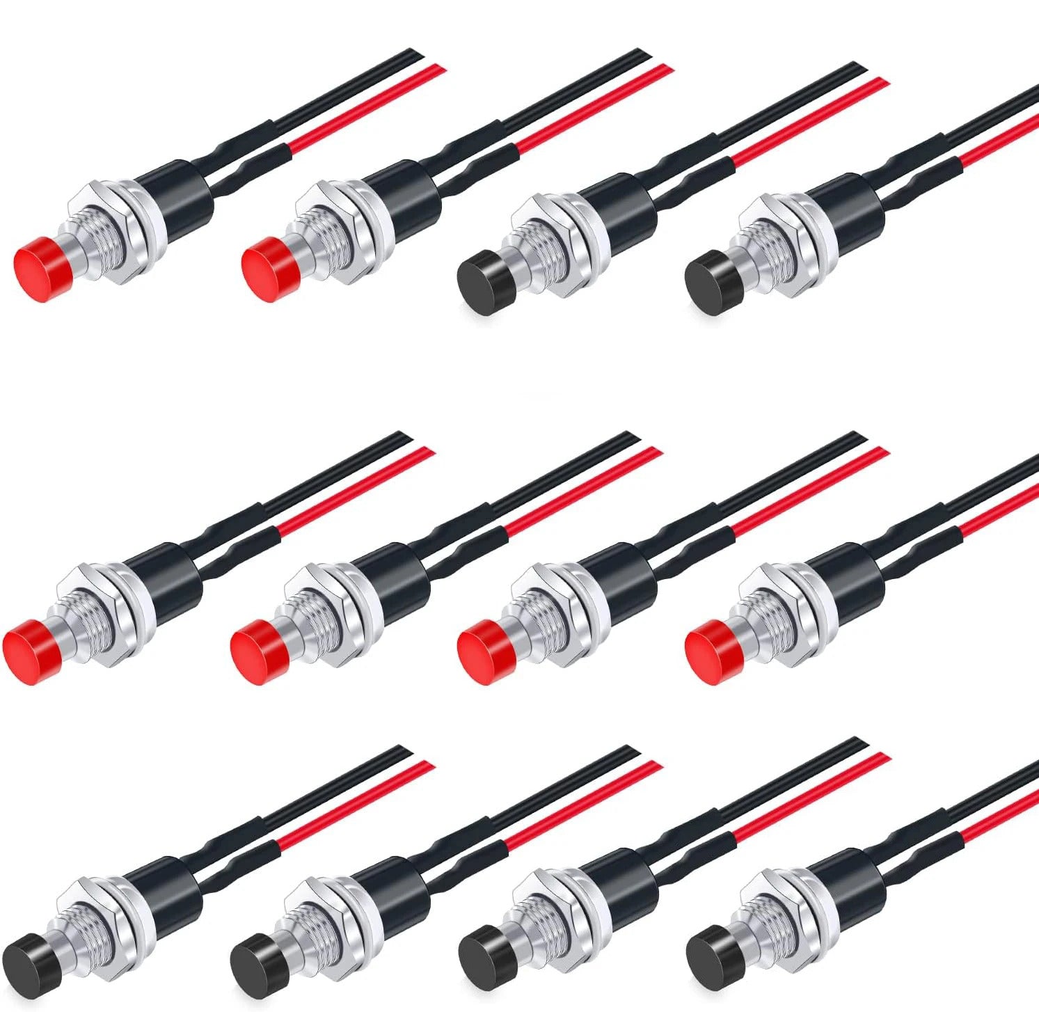 12 x PRE WIRED MINI MOMENTARY PUSH SWITCHES BLACK & RED 7mm SPST
