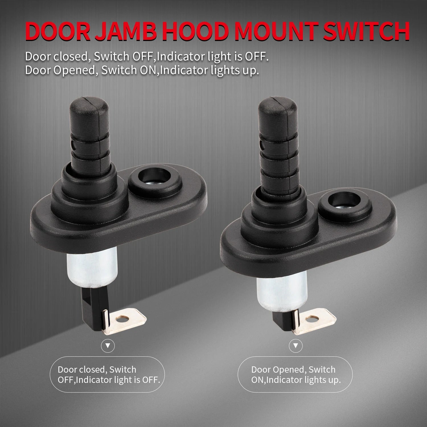 The hood pin switch is a momentary ON/OFF switch, normally closed design for car door or hood, which acts as door close, switch OFF; door open, switch ON.