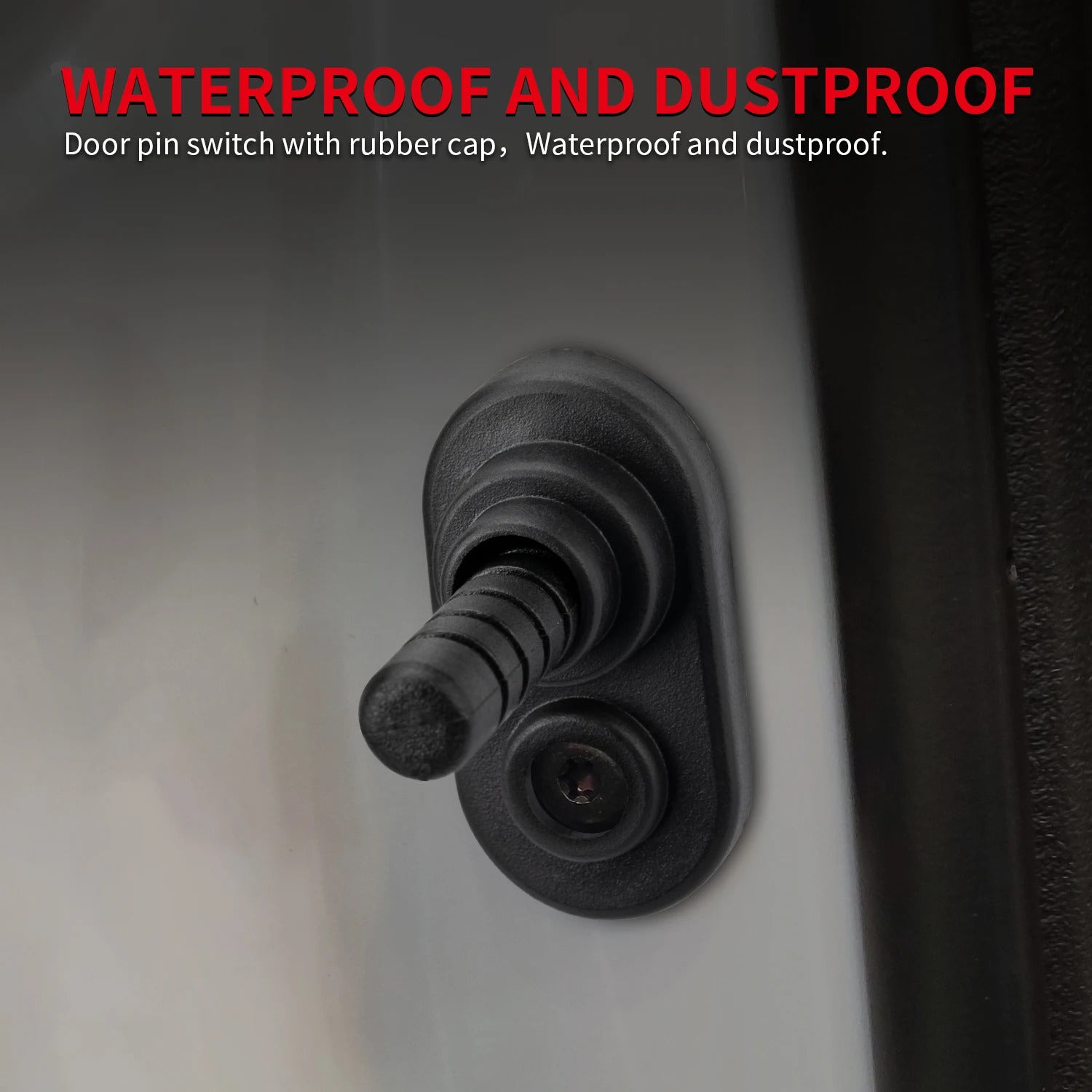【Feature】 - The door pin switch is made of nickel plated iron, which will come with a rubber made waterproof cover cap, rated at 20A 12V DC.