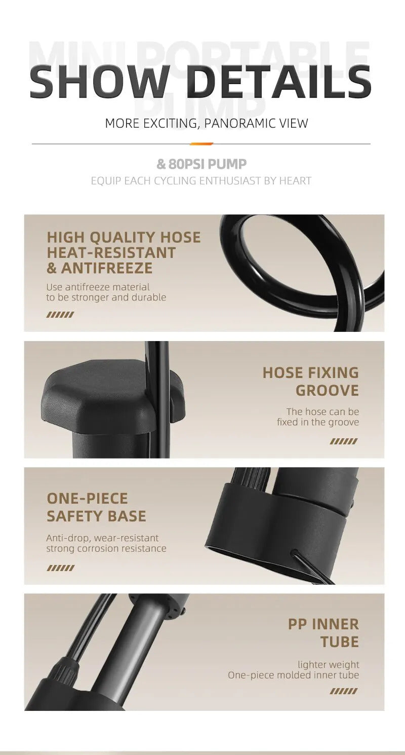 • Cycling Accessories :The pump is a must-have accessory for any cyclist, ensuring that you can always be prepared for unexpected flats.