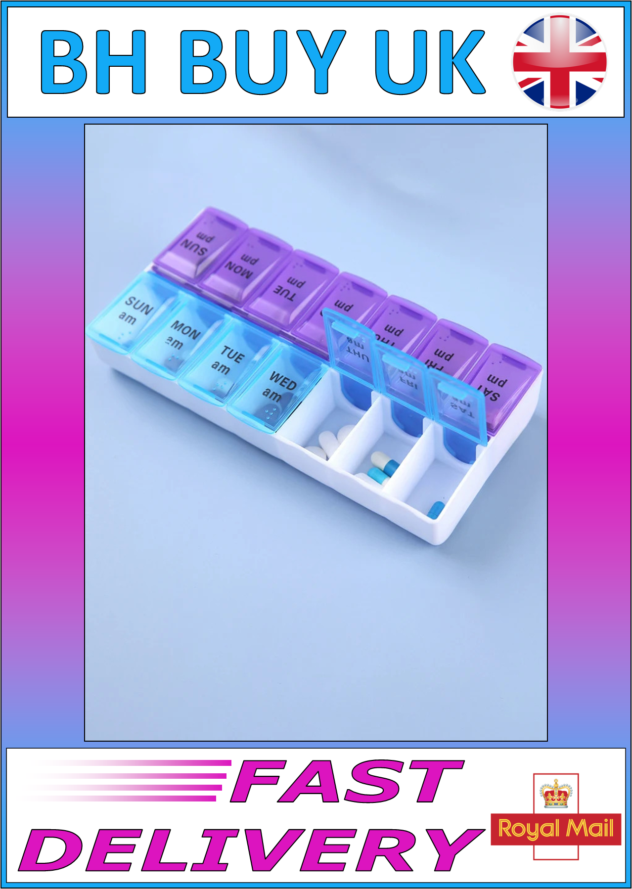 WEEKLY 7 DAY 14 GRID PILL BOX AM PM
