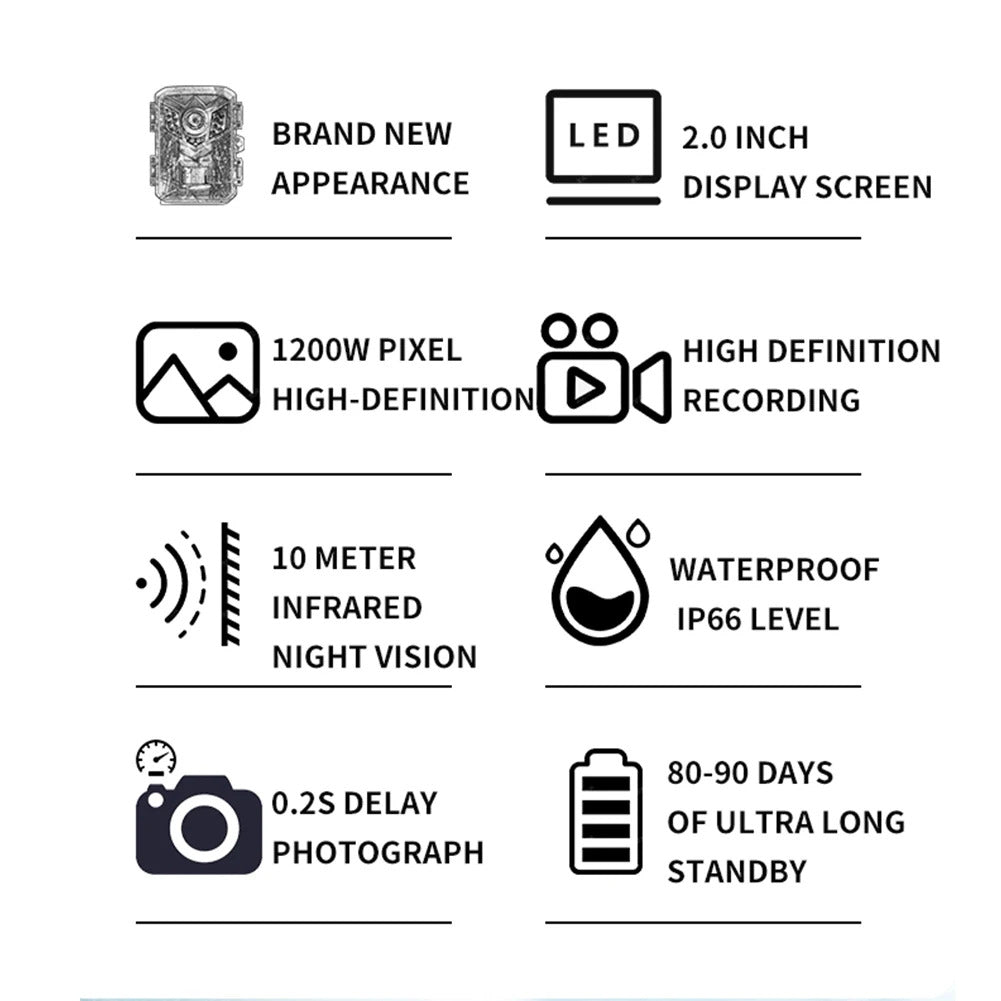 2. Weatherproof Design: With an IP66 rating for waterproof and dustproof protection, this hunting camera can operate reliably in harsh environments. It functions efficiently in temperatures ranging from -20°C to 70°C, making it suitable for use in a variety of weather conditions.